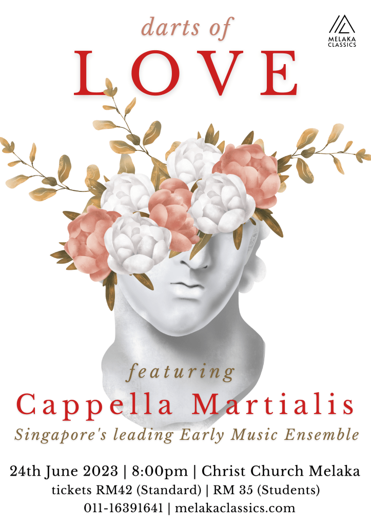 This 24th June, Singapore’s leading Early Music Ensemble ๐๐ฎ๐ฝ๐ฝ๐ฒ๐น๐น๐ฎ ๐ ๐ฎ๐ฟ๐๐ถ๐ฎ๐น๐ถ๐ returns to Melaka once again! Singing love songs, madrigals and choruses of the Renaissance with historically informed instrumentation such as viols, lute and guitar, and recorders. Come join us for an evening of passionate music under the awe-inspiring arches of iconic Christ Church. Get tickets online by clicking here.