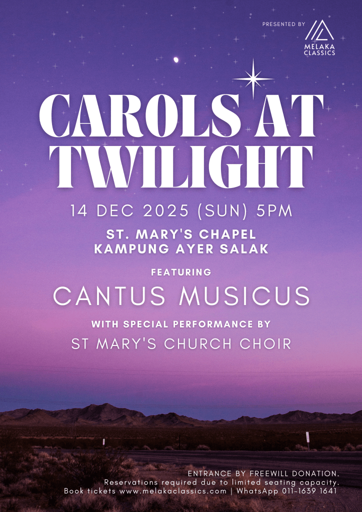 In the festive spirit, we are making entrance freely accessible to all! Ticket reservations (by freewill donation) are required due to limited seating capacity. Proceeds will go to the Church of St Mary building fund, as well as to the furtherment of the Arts in Malaysia.