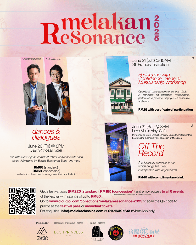 Don’t miss your chance to learn from world-class musicians, right here in Melaka at the Monument Music Academy. Our esteemed guest artists Bernardo Santos (University of Aveiro, Portugal), Andrew Ng (Concertmaster, Sinfonia Lahti Finland), and Christopher Mui (Singapore Symphony Orchestra) will be offering limited sessions for masterclasses for piano, violin, and cello.